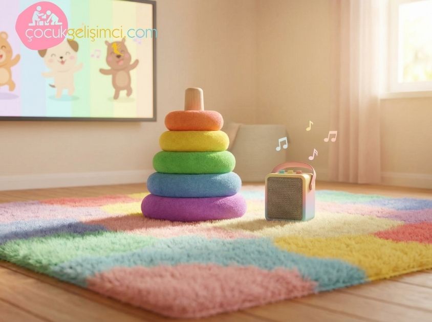 Malzemeler: Yumuşak bir minder veya halı, renkli bir oyuncak, neşeli bir fon müziği.